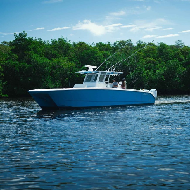 Built with cutting-edge design, this Invincible 40 Catamaran features asymmetrical sponsons and double-stepped hulls for a smooth, dry, and stable ride — even at high speeds and sharp turns. A massive aft deck and 26-inch gunwales provide plenty of space to fight multiple fish at once. Three livewells (55, 55, and 72 gallons) ensure your bait stays lively and ready for the bite.